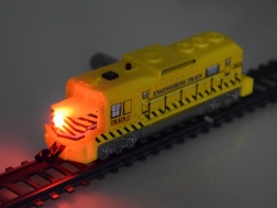 Stiskem tlačítka na střeše lokomotivy se souprava rozjede a rozsvítí se červené světlo. Děti si užijí plynulou jízdu a efekt, který připomíná skutečný provoz.