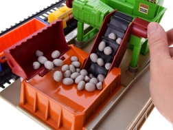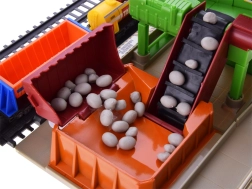 Zastavte vlak u stanice a pomocí mechanických prvků naložte kamínky do vagonu. Děti si procvičí jemnou motoriku i představivost a zažijí realistickou „těžební“ operaci.