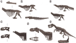 Použijte kladívko, dlátko a štěteček, jemně odkrývejte obsah a objevte barevné minerály i kostru T‑REXE. Poté kostru složíte do ozdobného modelu.