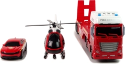 Hasičský záchranný set s návěsem, autem a vrtulníkem se světly a zvuky