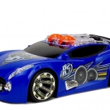 Sportovní DJ auto přináší kombinaci hudby, světel a akce. Dvě oranžová tlačítka na střeše ovládají přehrávání melodií a zvuk rychlého zrychlení, zatímco se reproduktory na střeše střídavě pohybují v rytmu. Díky efektním světlům a sportovním nálepkám působí auto energicky a přitáhne pozornost každého malého řidiče.