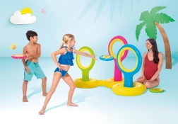 Tato nafukovací vodní hra s disky je perfektní volbou pro letní dny u bazénu. Děti si užijí házení disků skrz barevné kruhy a přitom si zlepší koordinaci pohybu i přesnost. Díky rozměrům 1,78 × 1,02 × 1,04 m je set stabilní a dobře viditelný.