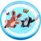 Zábavný kapesní hlavolam s motivem KRTEČKA a kamarádů rozvíjí jemnou motoriku, trpělivost a koordinaci očí a rukou. Lehký plastový labyrint o průměru 9 cm stačí naklánět a vést kuličky do cílových míst – ideální na cesty, do čekárny i na chvilky klidu doma.