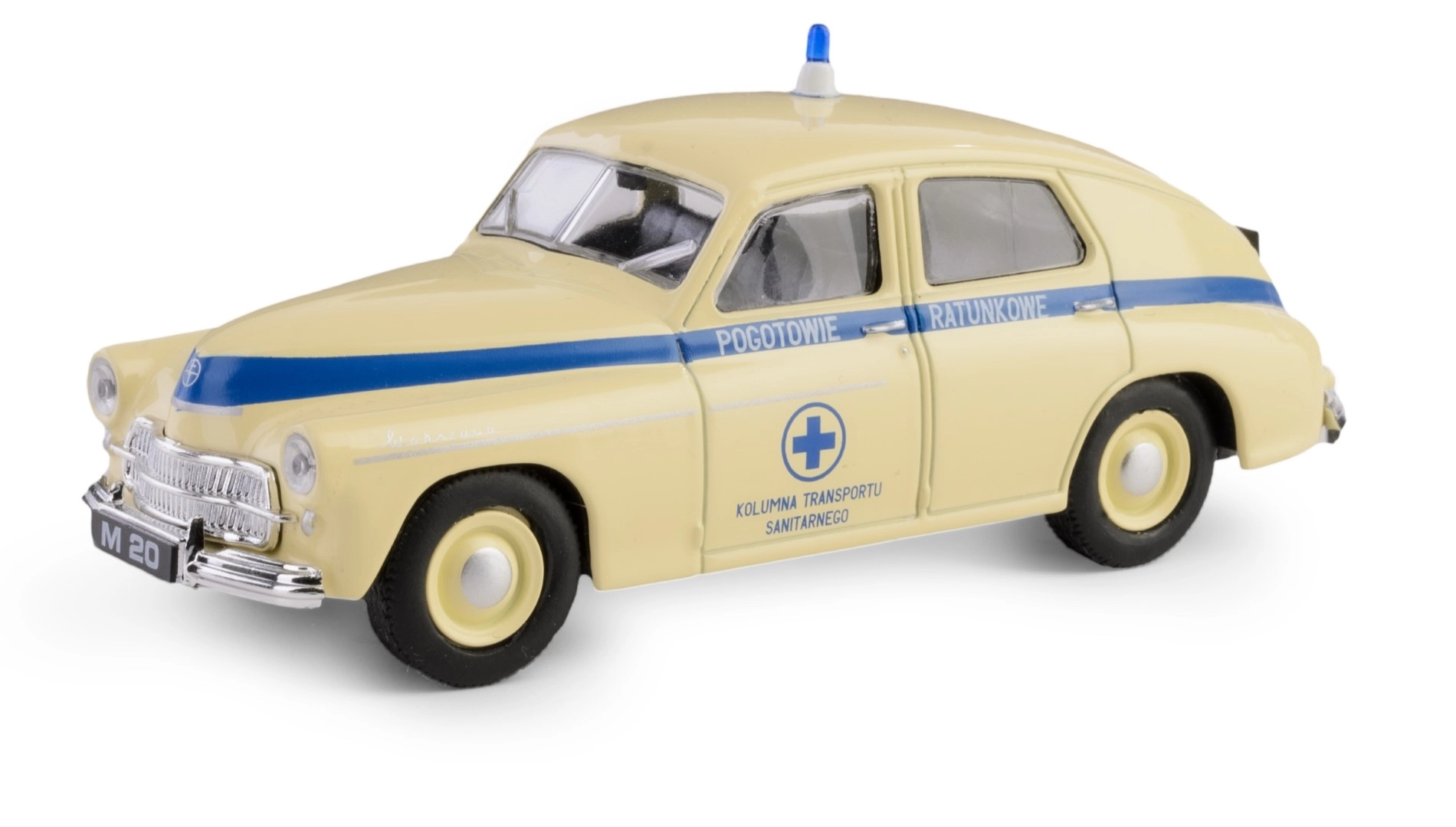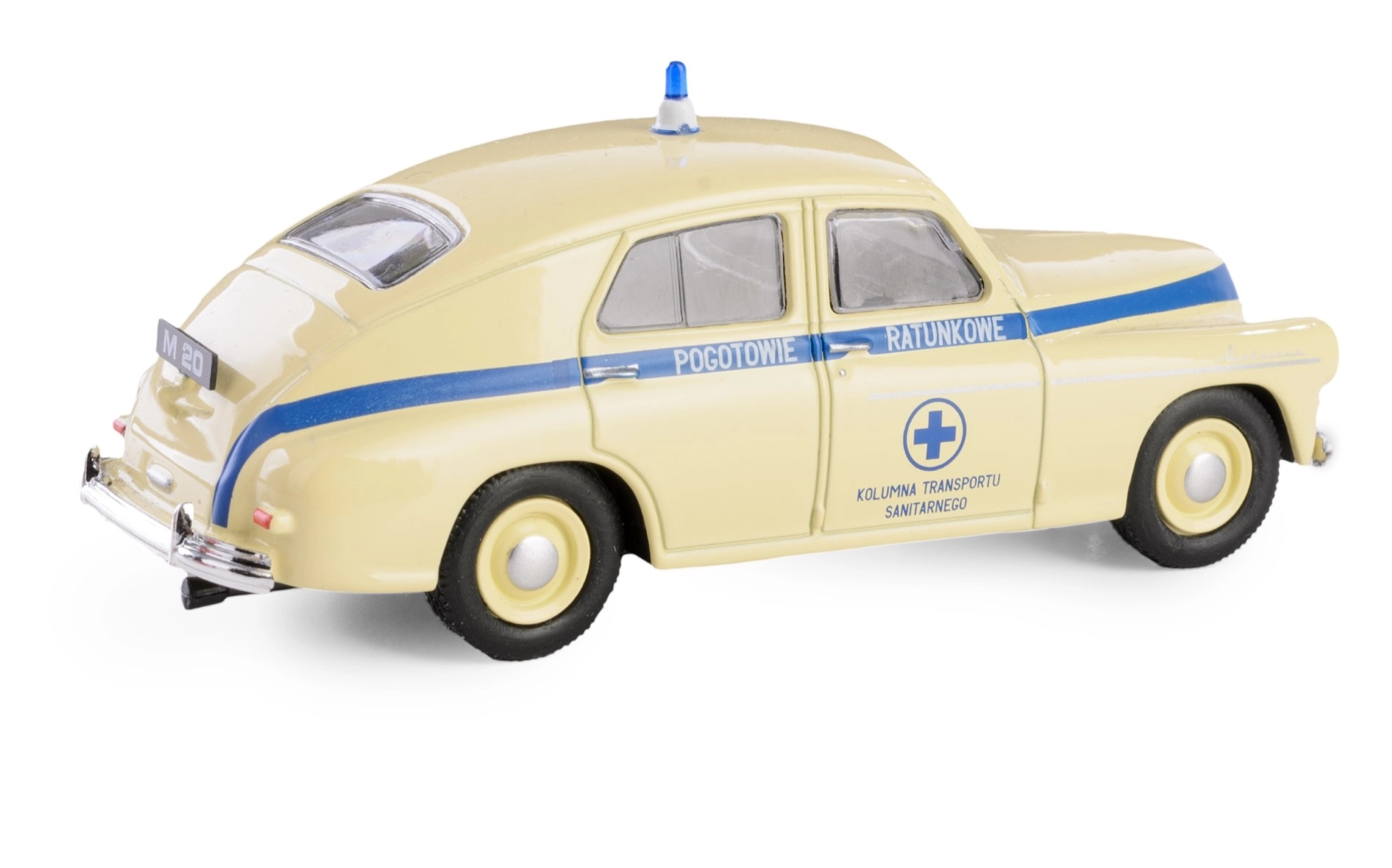 Objevte ikonický historický automobil z dob PRL – sanitní verzi vozu Warszawa v měřítku 1:43. Tento detailně zpracovaný model kombinuje pevnou kovovou karoserii s přesnými plastovými prvky a věrně zobrazuje charakter legendárního vozu.