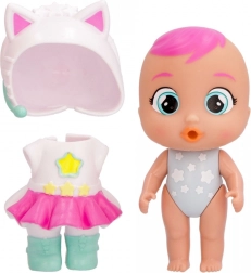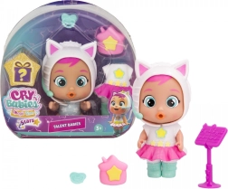 Panenka Daisy z řady Cry Babies Magic Tears je hvězda pódia – miluje zpěv a vystupování. Oblečte ji do stylového růžovo-bílého kočičího kostýmu, postavte k notovému stojanu a nechte její talent zazářit. Po naplnění lahvičky vodou a nakrmení panenky stačí jemně stisknout bříško a Daisy začne ronit skutečné slzy, které dělají hru realističtější.