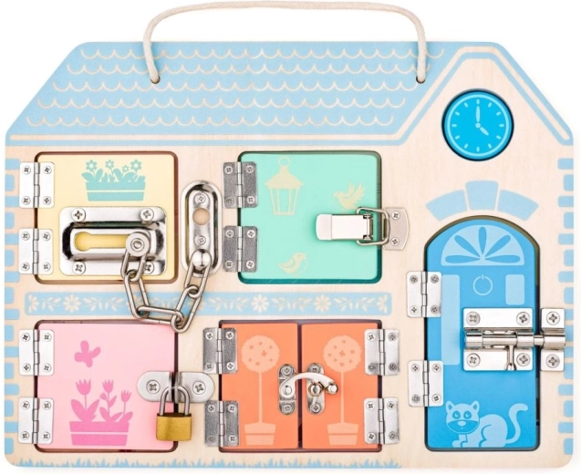 Tato motorická tabule je ideální hračkou pro děti od 3 let. Pomáhá rozvíjet jemnou motoriku a logické myšlení prostřednictvím interakce se zámky a zabezpečeními.