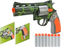 Set obsahuje kompaktní pistoli se vzorem v kamufláži, která je pohodlně držitelná v jedné ruce. Náboje z pěny a měkké gumy zajišťují maximální bezpečnost a lehkost. Set obsahuje 6 nábojů.