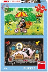 Dětské puzzle DINO KRTEČEK – Krtkův den přináší dvě skládanky po 48 dílcích, ideální pro děti od 4 let. Při stavění si děti rozvíjejí jemnou motoriku, trénují soustředění a užijí si dva roztomilé motivy z oblíbené pohádky. Puzzle jsou z odolného a zdravotně nezávadného kartonu a jsou vyrobené v ČR.