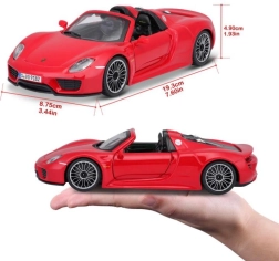 Užijte si krásu sportovního vozu s modelem Bburago Porsche 918 Spyder ve velikosti 1:24. Tento model je vyroben z kovu, což zajišťuje jeho dlouhou životnost a odolnost. Díky přesnému zpracování a nádherným detailům se hodí jak pro sběratele, tak pro děti jako hračka.