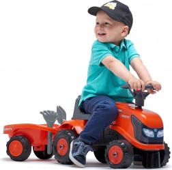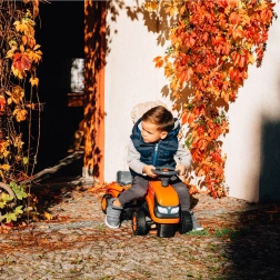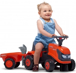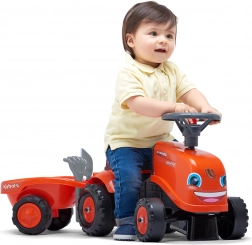 Rozjeďte fantazii malého farmáře s jezdeckým traktorem KUBOTA. Pečlivé zpracování, kvalitní plastová kola a otočná přední náprava zajišťují snadné řízení a dlouhou životnost. Díky odpojitelnému přívěsu si děti odvezou své poklady kamkoli.