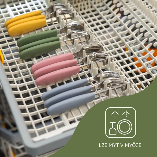 Široké a měkké silikonové rukojeti usnadňují držení a podporují správné návyky při stolování už od prvních pokusů.