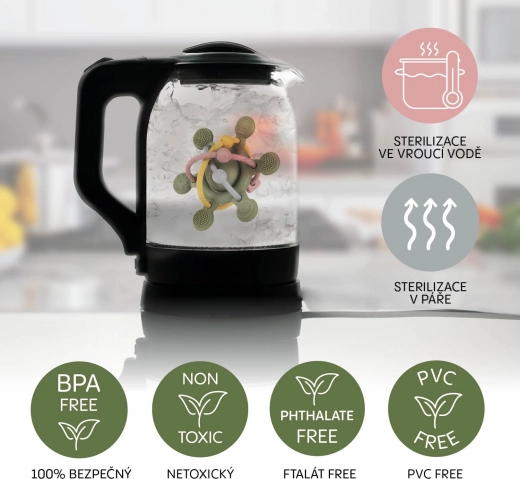 - Snadné čištění – neabsorbuje pachy, lze mýt v myčce a sterilizovat.