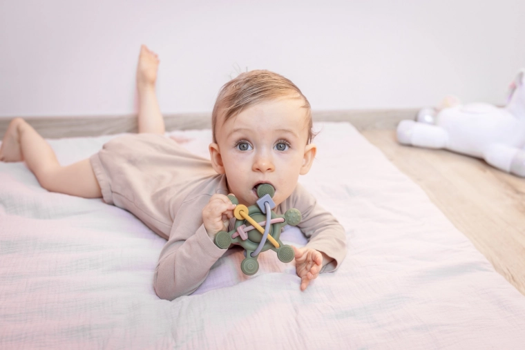 - 2v1: kousátko a chrastítko – zabaví a uklidní zároveň.