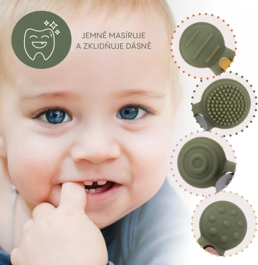 Více typů povrchů poskytuje cílenou úlevu při prořezávání zoubků a zároveň podporuje smyslovou stimulaci.