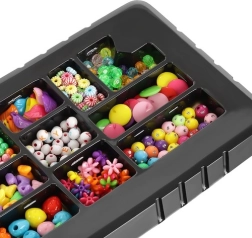 Tato jedinečná sada na výrobu šperků je ideální volbou pro děti, které chtějí rozvíjet svou kreativitu a zároveň si užít hodiny zábavy. Obsahuje 11 druhů korálků v různých tvarech a barvách, spolu s elastickým provázkem, což umožňuje mnoho možností pro tvorbu náramků a náhrdelníků.