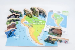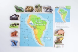 Ponořte se do světa Jižní Ameriky a objevte její fascinující faunu díky tomuto dřevěnému puzzle. Sada obsahuje: