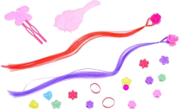 barevné dva prameny fialové a červené barvy. sponky, pletací korálkyów budou zdobitÄ