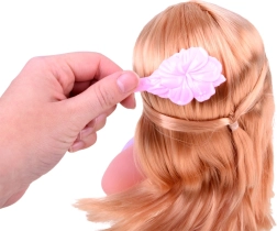 Elegantní gÅowa pro česání s dÅošklivými blond wÅosami a doplňky pro tvorbu účesů se budou pravděpodobně líbit každému maże maÅe kadeřníkovi. Modelka má dÅdlouhé blond wÅvlasy, k jejímu stylingu sloužíÄ