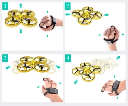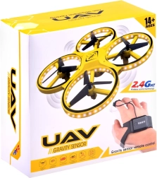 Kvadrokoptéra UAV Gravity Sensor -je zábavná nabídka pro děti mÅstaré a starší, které mají rádyÄ létající hračky. PlněÅoÅdron je vyroben z plastu, s fantastickým LED oÅosvětlením, které skvěle představujeÄv póÅtmě. Dron se ovládá pomocí speciálního dálkového ovládání, které je připevněno kÄkÄ jako hodinky. Ovládá se pomocí rÄkÄ , gest hračka má široké možnostiżmanévrování, stačí jemný pohyb rÄkÄ změnitÄ směr letu, doprava doleva, góra dóÅ. Po vypuštění zůstáváÄ ve vzduchu a otáčí seÄ kolemóŠosyóŠo 360 stupňů. PásekÄ má býtży zaÅożyÄ na dÅoÅ, posuvnýÄ c itÄ meziÄt palcem a krytÅadÄ t řemínkem s tlačítkem na ukazováčkuÄ t. Silikonový řemínek má 12stupňovéÄ nastaveníÄšířkyÄ-budeÄsedětÅkaždému. Hračka je lehká, takže se rychle vzneseÄ do vzduchu, 4 protilehláżkřídlaÅpoužitá v ní zvyšujíÄ její stabilituÅÄběhem letu.