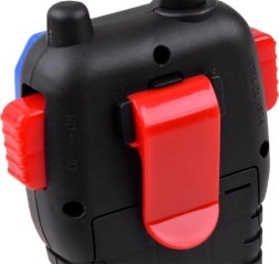Ergonomické tělo vysílačky dobře padne do ruky a klip na pásek zajistí, že ji budou mít děti vždy po ruce, aniž by jim překážela při hře.