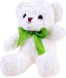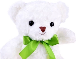 Elegantní bílý medvídek se zelenou mašlí potěší děti i dospělé a hodí se k narozeninám, svátkům i jako milé překvapení jen tak.