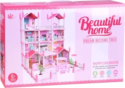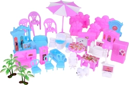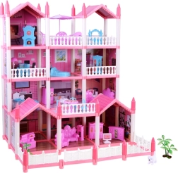 Růžová vila – domeček pro panenky s nábytkem, 222 dílů