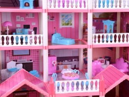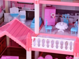 Tato půvabná růžová vila nabízí dětem skutečně velký prostor pro fantazii: 10 detailně zpracovaných pokojů, balkony a terasu, které lákají ke hře na domácnost, hotel nebo penzion. Konstrukční prvky a nábytek jsou z odolného plastu, zatímco stěny, podlahy a střechy tvoří karton s barevným potiskem místností – po sestavení působí dům velmi esteticky a útulně.