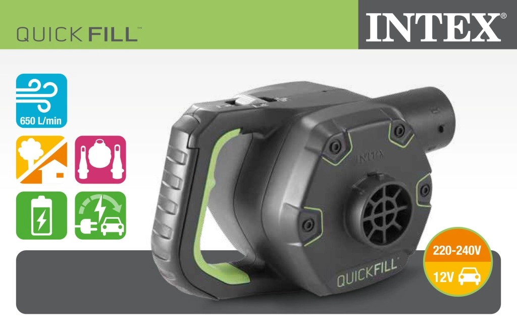 Tato kompaktní a výkonná elektrická pumpa nabízí kombinované napájení – můžete ji připojit jak do běžné elektrické zásuvky 220–240 V, tak do auto zásuvky 12 V. Díky tomu je skvělým pomocníkem na dovolenou, k vodě i pro domácí použití.