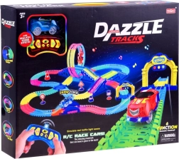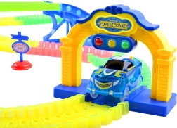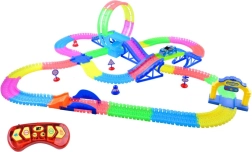 Tato barevná, flexibilní autodráha umožňuje dětem sestavit si vlastní trasu s smyčkami, mosty a křižovatkami. Dlouhá 6,56 m, nabízí dostatek prostoru pro rychlé závody, experimentování a rozvoj fantazie. Průhledné a zářivé segmenty vytvářejí během jízdy atraktivní světelné efekty.