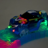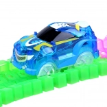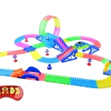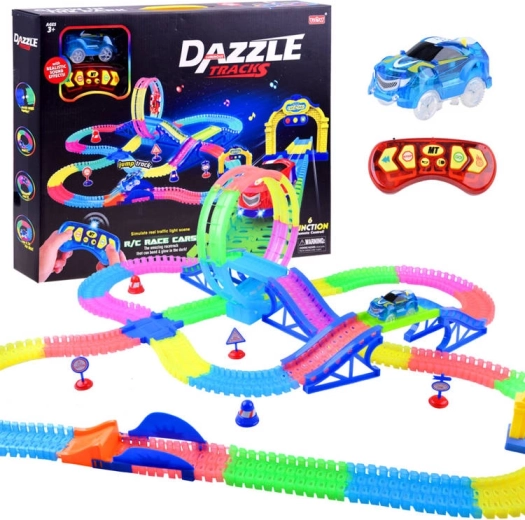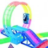 Tato barevná, flexibilní autodráha umožňuje dětem sestavit si vlastní trasu s smyčkami, mosty a křižovatkami. Dlouhá 6,56 m, nabízí dostatek prostoru pro rychlé závody, experimentování a rozvoj fantazie. Průhledné a zářivé segmenty vytvářejí během jízdy atraktivní světelné efekty.