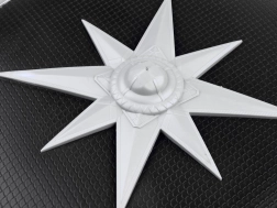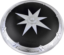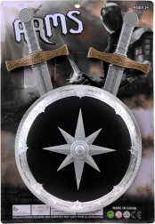 Kulatý štít s hvězdicovým motivem a meč s ozdobnou zlatou rukojetí působí realisticky a dodají každému kostýmu působivý vzhled.