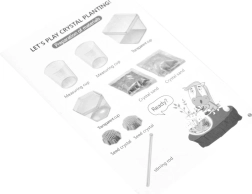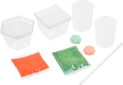 Součástí balení jsou všechny důležité pomůcky: od odměrných nádobek, přes krystalový písek, až po semínko krystalu a míchátko. Jasný obrázkový návod vede děti bezpečně celým procesem. Pro nejlepší výsledek dodržujte doporučené teploty, časy a postupy a provádějte experiment pod dohledem dospělého.
