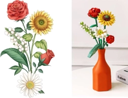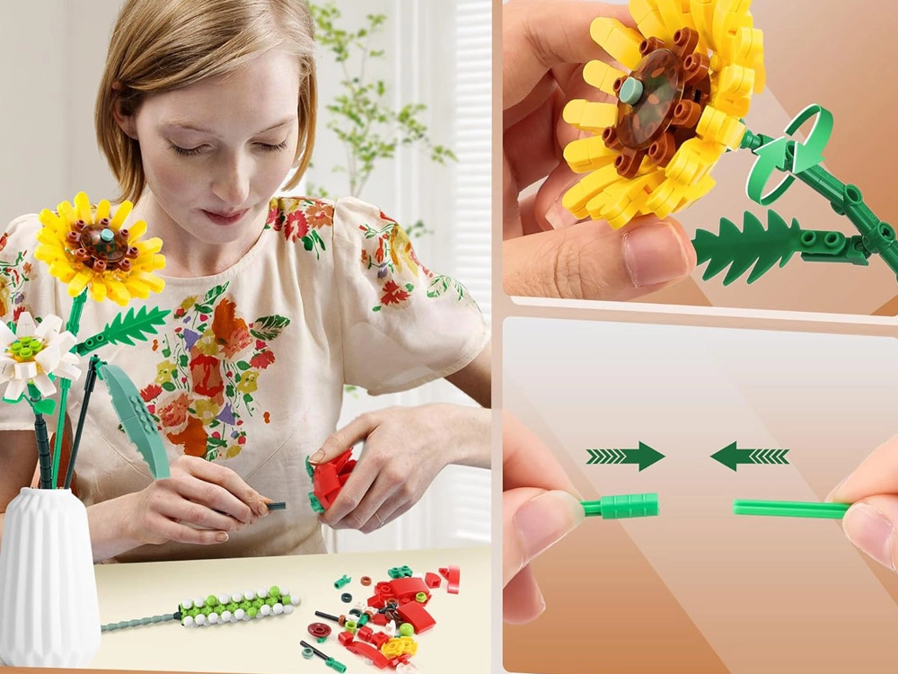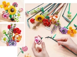 Tato kreativní stavebnice květin přináší vše, co potřebujete k vytvoření působivé kytice o délce přibližně 31,5 cm. Díly v živých barvách a promyšlených tvarech umožní postavit různé druhy květů i listů a vytvořit tak jedinečnou dekoraci do vázy, na stůl či polici.