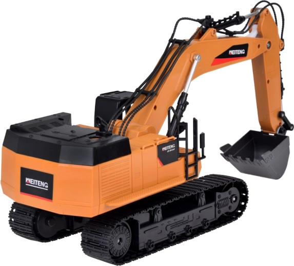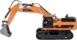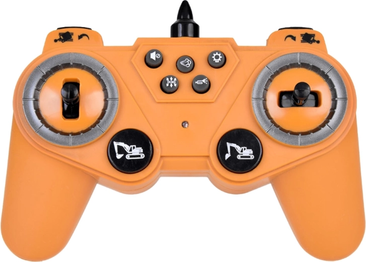 Dálkové ovládání na frekvenci 2,4 GHz je stabilní a bez rušení, takže můžete řídit jízdu vpřed/vzad, otáčení na místě, zvedání ramene i práci lžíce zvlášť. Nechybí tlačítko vypnutí zvuku, funkce DEMO ani klakson.