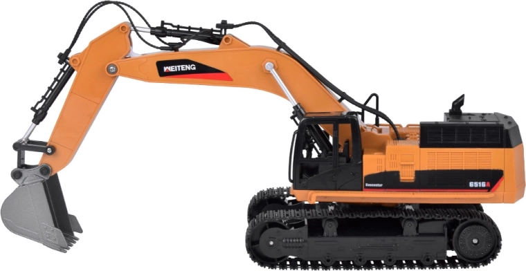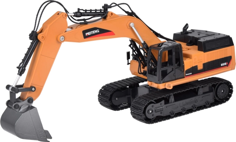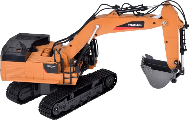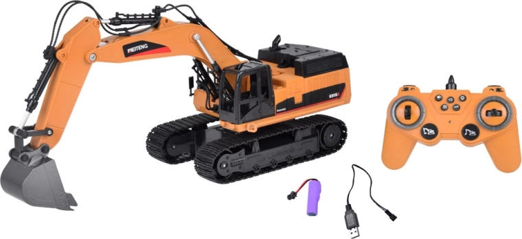 V balení najdete: bagr, dálkový ovladač, akumulátor 3,7 V 500 mAh, USB nabíječku a pipetu na vodu pro efekt kouře. Před prvním použitím akumulátor nabijte min. 2 hodiny.