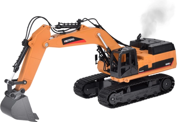 Plynulé a přesné ovládání bez rušení: jízda vpřed/vzad, zatáčení, otáčení na místě, práce ramene i lžíce, efekt kouře a režim DEMO.