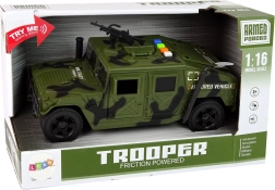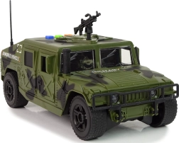 Pokud se vaše dítě zajímá o vojenskou tematiku a obzvláště o vozidla, toto vojenské auto vzbudí jeho vášeň a umožní mu poznat tajemství vojenského světa. Vojenské vozidlo představuje perfektní přídavek do kolekce každého malého milovníka armády a vojenských motivů. Je navrženo tak, aby oslovilo malé vojáky, kteří obdivují tento hrdinský, ale nebezpečný povolání. S válečnými barvami a širokou karoserií se podobá skutečnému vojenskému vozidlu, včetně pistole na střeše.