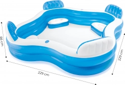 Praktické 2 držáky nápojů udrží vaše osvěžení vždy po ruce, vypouštěcí ventil zase usnadní rychlé vypuštění vody. Bazén je snadno přenositelný, rychle se nafukuje a díky rozměrům 229 × 229 × 69 cm poskytne dostatek prostoru pro relax i hraní.