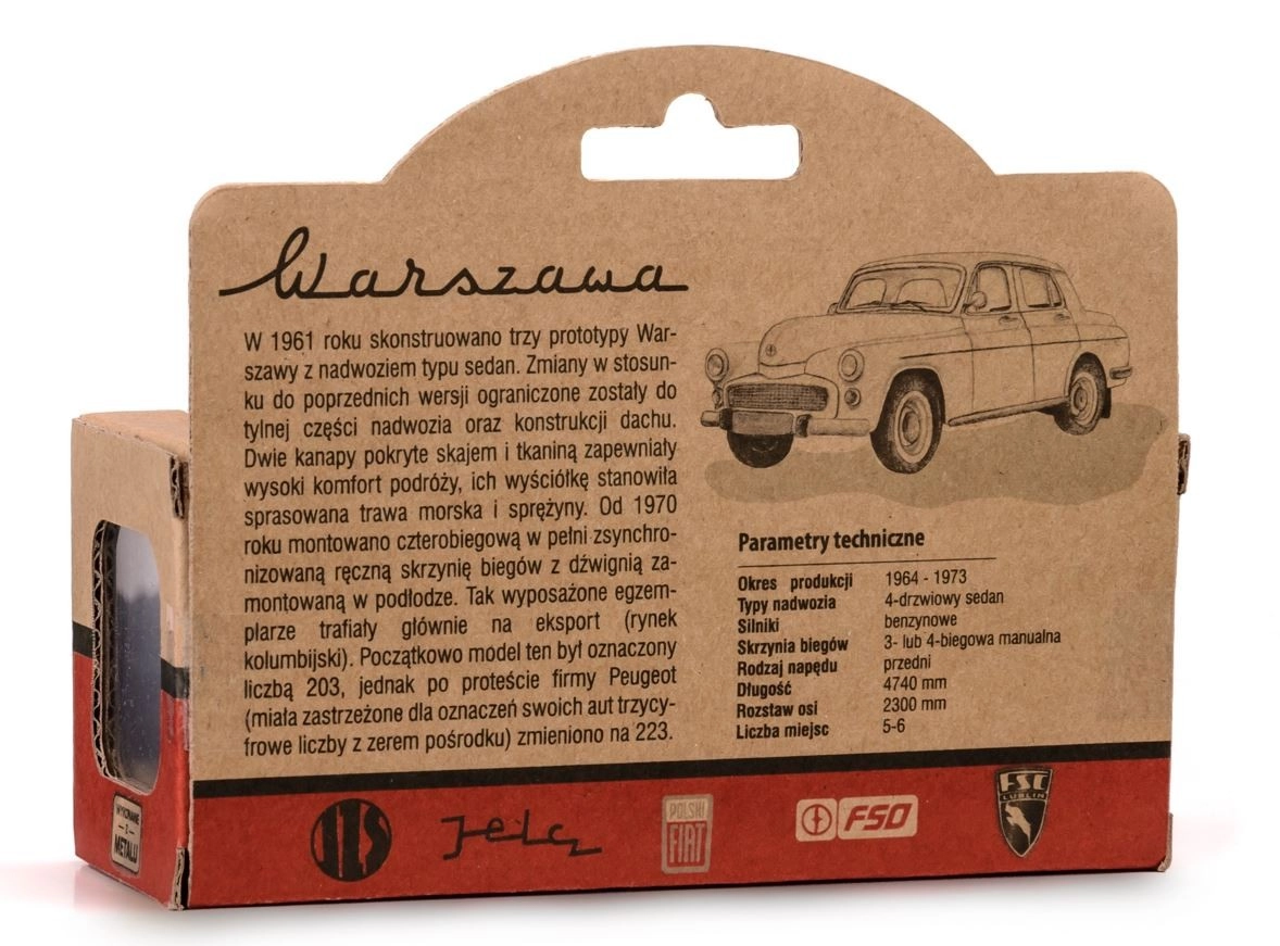 Warszawa 223 je model známého polského vozu, který byl v roce 1961 navržen s karoserií typu sedan. Elegantní design a pečlivě zpracované detaily z něj dělají ideální doplněk do jakékoli sbírky modelů aut. Nejvýznamnější vlastnosti tohoto modelu zahrnují: