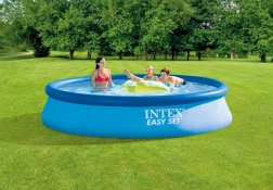 Klasika mezi nadzemními bazény. Bazén Intex Easy Set patří mezi velmi oblíbené bazény. Užijte si léto na vaší zahradě! Tento nadzemní bazén Intex Easy Set s nafukovacím horním límcem potěší každého člena rodiny. Ideální bazén pro rodiny s dětmi, neboť neobsahuje kovové součásti.