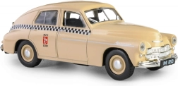 Historizující model vozu Warszawa M20 taxi v písečném odstínu přináší nostalgii poválečné éry a je ideální pro milovníky auta z doby PRL.