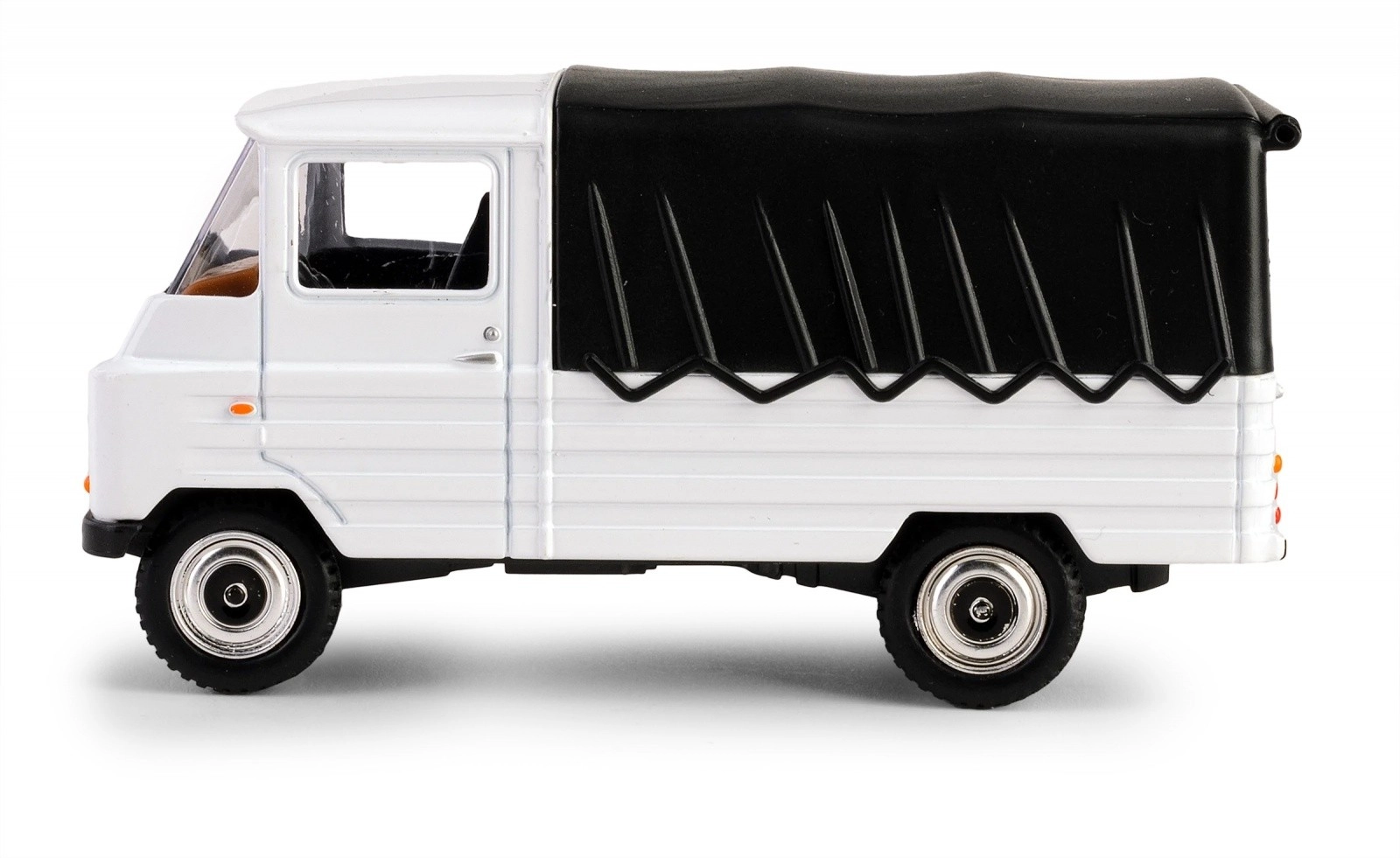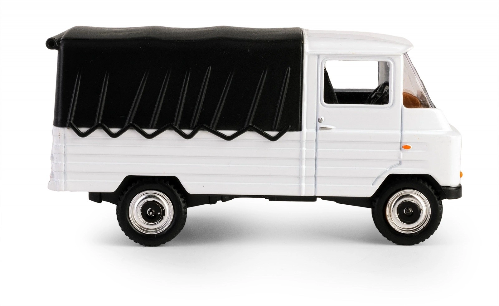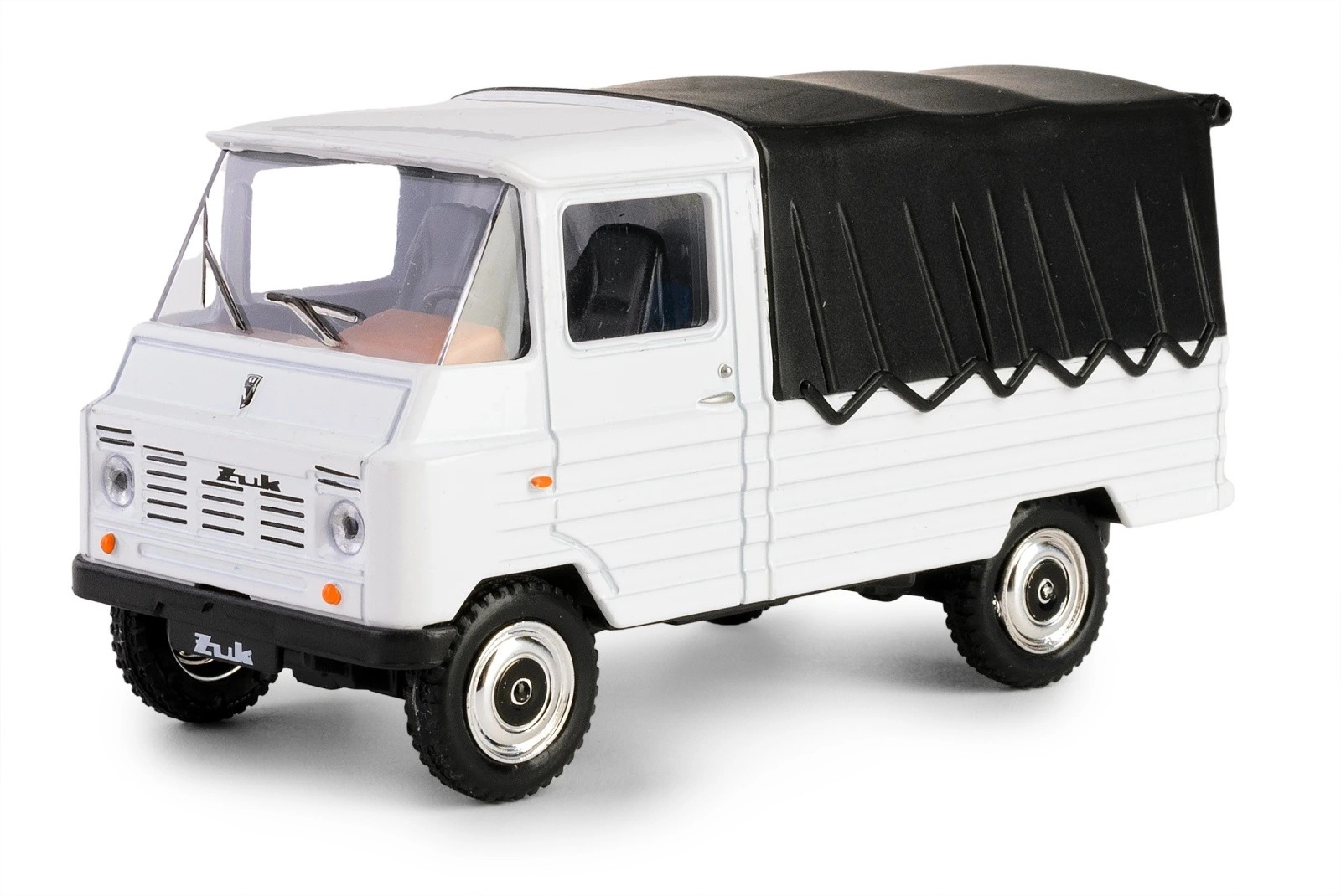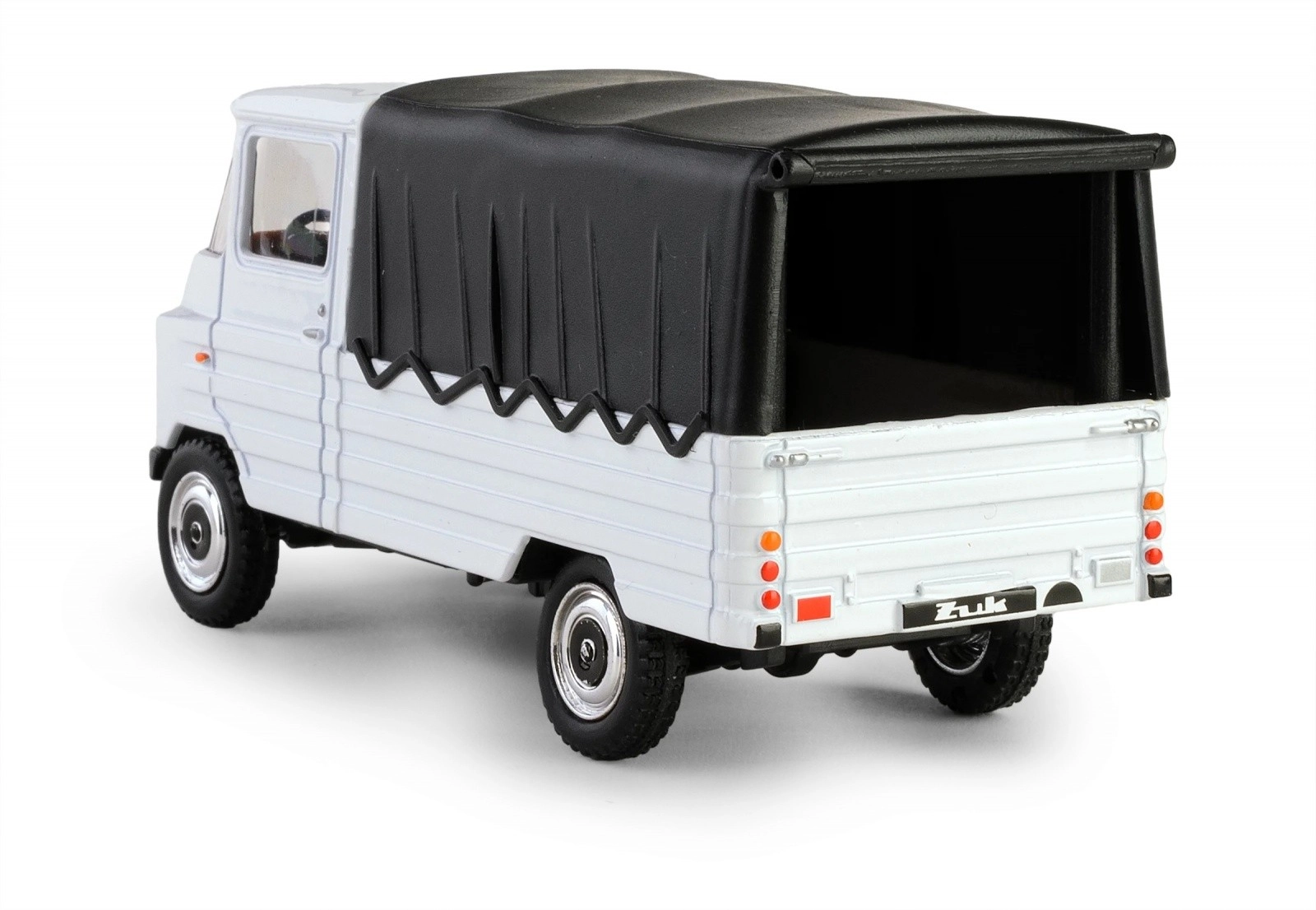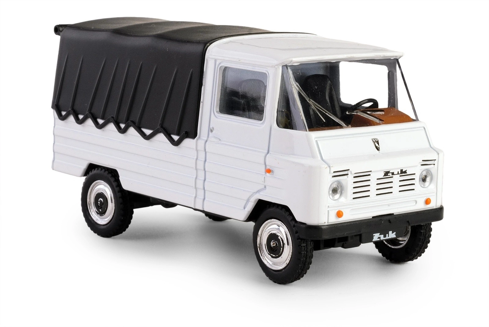 Bílá karoserie s černou plachtou a precizně naznačené detaily světel, masky a kol věrně připomínají skutečný vůz PRL ŻUK. Ideální do vitríny i jako stylová dekorace.
