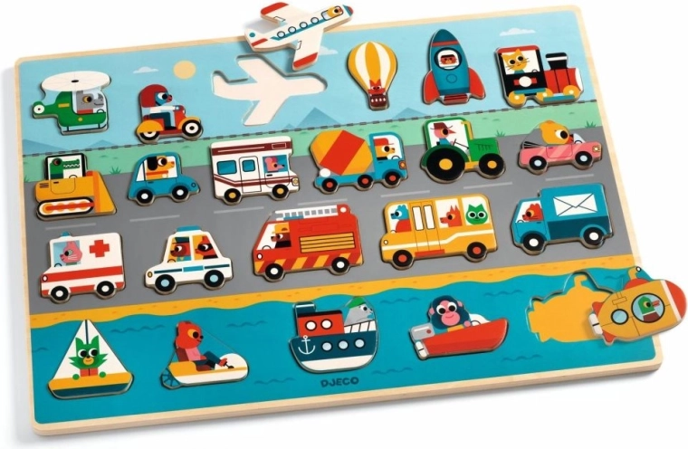 - Dřevěná vkládačka (puzzle) s motivem dopravy