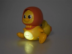 Interaktivní kachničky jsou skvělou volbou pro první hrátky i motivaci k pohybu. Velká kachna se po rovném povrchu posouvá dopředu, přitom se vesele houpe do stran a na bříšku jí svítí světýlko, které lze jedním stiskem vypnout. Hudební doprovod podněcuje vnímání rytmu a rozvíjí sluch i zrak.