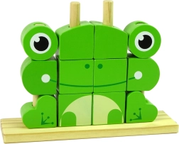 Kreativní dřevěná skládačka ve tvaru žabky je navržena pro děti, aby je povzbudila ke tvoření a učila koordinaci. Skládačka obsahuje 12 dílků, které se nasazují na základnu s kolíky, umožňující vytvoření různých zvířátek nebo objektů podle fantazie.