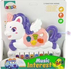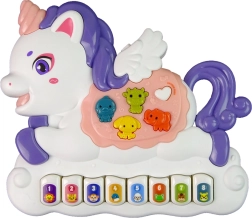 Interaktivní piano Jednorožec je pečlivě vyrobeno z kvalitních materiálů a nabízí různé funkce, které zaujmou každé dítě. Díky krásnému designu jednorožce s fialovou hřívou a svítícími prvky přitahuje pozornost a motivuje k objevování světa zvuků.