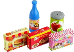 Tato hračka je vhodná pro děti od 3 let a obsahuje celkem 50 kusů: ovoce, zelenina, sýry a klasické pokrmy, jako jsou pizza, hot-dog nebo chipsy. Děti se mohou těšit na hodiny zábavy s tímto realistickým herním setem.
