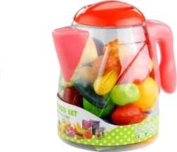 Objevte barevnou sadu potravin v praktickém džbánu s červenou rukojetí. Každý prvek této sady je pečlivě vytvořen z bezpečného, certifikovaného plastu, což zaručuje zábavu bez obav. Džbán s rukojetí usnadňuje jeho přenášení.