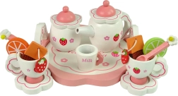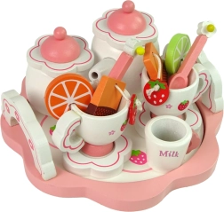 Součástí sady je vše pro dokonalé „odpolední čajování“: konvička, šálky se lžičkami, džbánek na mléko i roztomilé doplňky jako plátky ovoce a sáčky čaje. Děti si procvičí spolupráci, komunikaci a motoriku během každodenních her.