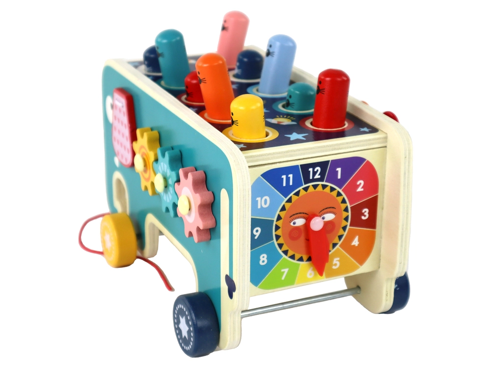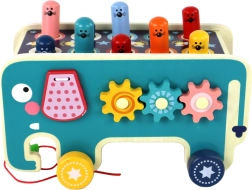 Barevné kolíčky na horní straně a převody na boku motivují děti k aktivní hře a rozvoji dovedností.